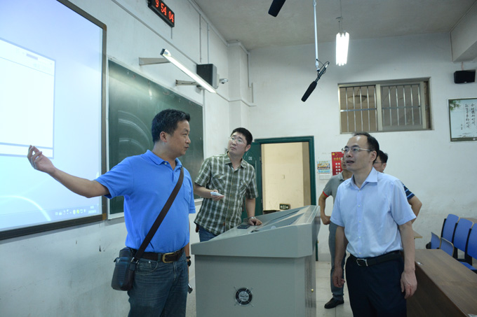 8月31日,我校新学期正式上课的第一天,校党委书记韦成龙教授、院长杨小云教授等校领导率领党政办、学工部、宣传部、教务处等部门负责同志深入到涵虚楼、致远楼、宁静楼、理工楼、丹青楼等教学楼栋检查新学期开学第一天的教风学风情况,并对多媒体教学设备的运转、教室环境卫生等情况进行了全面检查。