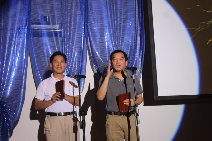 当晚的颁奖典礼由十组长沙市校园明星学生和老师担任颁奖嘉宾一一上台揭晓大赛十项权威大奖入围作品以及获奖名单;颁奖嘉宾们妙语连珠,惹得现场笑声连连。最后,我校刘世昌院副院长与本届大赛评委、《恰同学少年》《血色湘西》导演龚若飞颁发"最受观众欢迎男女演员奖",将典礼气氛推向高潮。