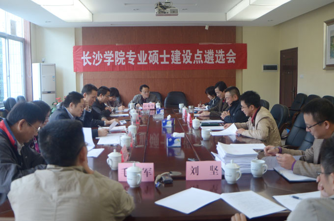 遴选会专家评审组有吉首大学肖湘愚校长、省教育厅学位办余伟良主任、中南大学研究生院学位办饶秋华主任等九位专家,肖湘愚校长任评审组组长。詹小平书记介绍了长沙学院概况及学科发展基本情况,并代表学校欢迎专家为我校申报专业硕士点把关。根据国家专业硕士点申报基本条件,评审组认真审阅了我校申报专业硕士点的材料,并展开了积极的分析讨论。