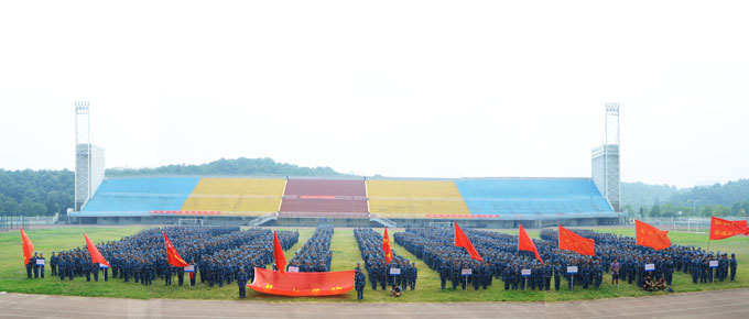 在雄壮的国歌声中,开学典礼拉开了序幕。詹小平书记在军训团团长刘志栋的陪同下检阅了受阅方阵,同学们"为人民服务"的口号声响彻云霄。校旗方阵和我校12个系部方阵以整齐划一的队列依次通过检阅台。