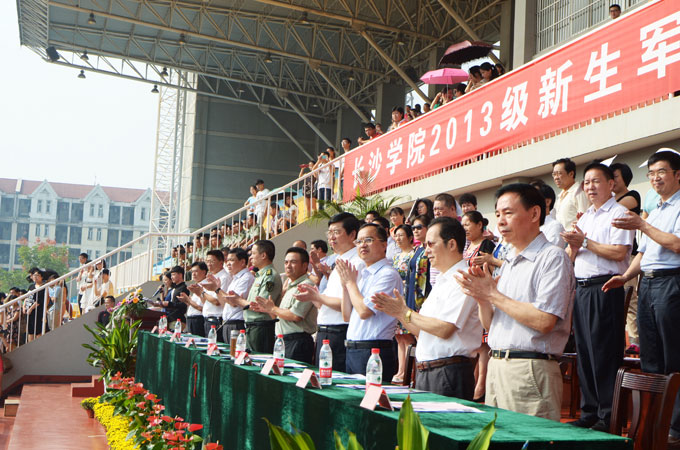9月22日上午 9时,我校2013级新生开学典礼暨军训会操表演在天健体育场隆重举行。2013级全体新生接受了全校师生的检阅。党委书记詹小平,党委副书记、院长韦成龙,副院长屈林岩、刘世昌、陈大川,纪委书记杨兴龙,正院级督导员郭清泉、雍正海,开福区武装部部长陆忠以及学校各机关处室、系部的负责人、全体辅导员和新生班主任出席了开学典礼。典礼由刘世昌主持。
