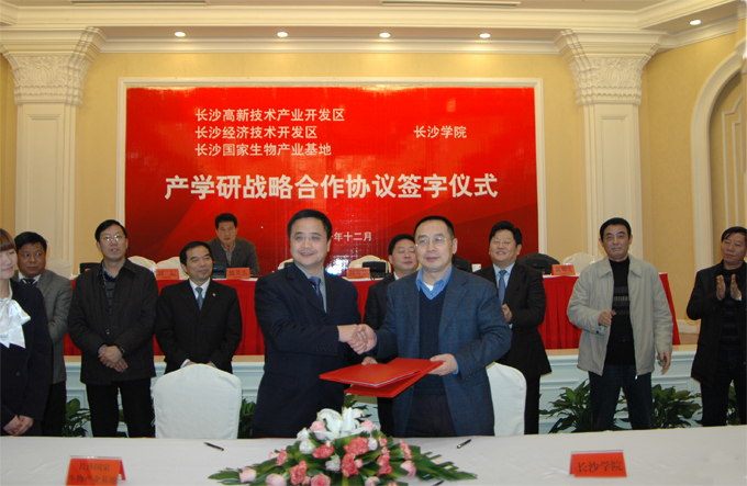 我校与长沙高新技术开发区、经济技术开发区、国家生物产业基地签订全面战略合作协议
