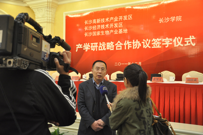 12月21日上午,我校与长沙高新技术开发区、经济技术开发区、国家生物产业基地在明城国际大酒店签订了全面战略合作协议。院长刘耘代表学校与三大园区负责人签订了全面战略合作协议。协议的签署标志着我校的产学研工作迈上了一个新的台阶。