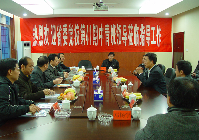 12月2日下午,省委党校第41期中青班领导莅临我校指导工作。此行的领导有衡阳县委书记肖顺生,娄底市万宝新区党委书记罗孝贵,新晃县政府县长张霞,省卫生厅办公室主任彭亮,省药监局稽查总队队长唐毅,省总工会研究室主任李铁华和省妇联宣传部部长李凯辉。