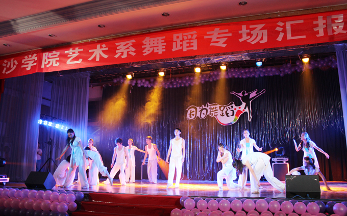 灯光璀璨,舞姿曼妙。11月22日晚,09级艺术系的舞蹈生们在教师学生活动中心为全校师生呈上了一场精彩的视听盛宴。此次舞蹈专场演出由艺术系主办,艺术系音乐教研室承办。长沙学院副院长王永宏、刘世昌,党委宣传部部长喻秋兰,电子与通信工程系主任刘安玲,长沙市歌舞剧院副院长刘学,艺术系主任柳玉、党总支书记胡嫔,副主任张建龙出席并观看了汇报演出。