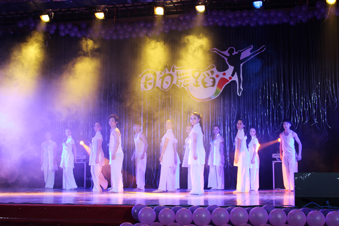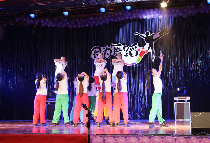 闪烁的灯光、粉色的气球为演出现场营造了欢乐而温馨的氛围。在悠扬的音乐声中,一支优雅婉转而富有古韵气息的舞蹈《典韵》拉开了汇报演出的帷幕。