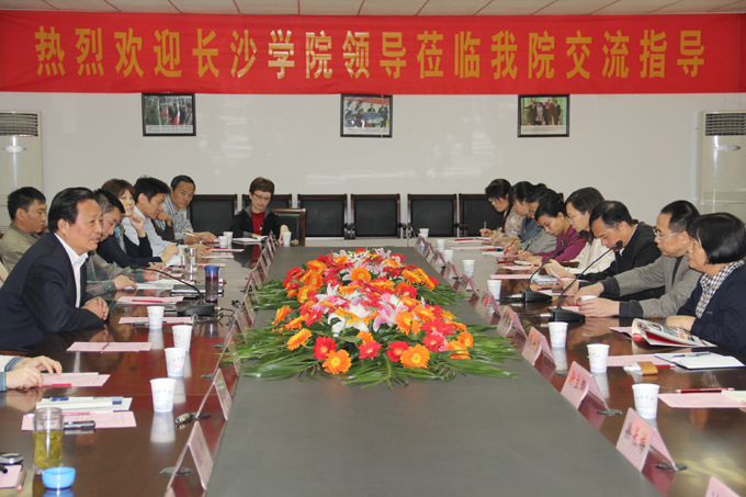 10月18日,刘耘院长一行到合肥学院考察学习。合肥学院党委书记陶登松、副院长陈啸以及相关处室负责人热情接待了考察团一行。陶登松书记介绍了合肥学院的办学历史和办学现状,刘耘院长介绍了长沙学院的基本情况,陈啸副院长详细介绍了合肥学院在迎接教育部本科教学合格评估中的宝贵经验,包括学校领导认真统筹谋划、中层干部严格执行、教师具体落实人才培养方案、学生主动适应学校改革等四个层面,同时还介绍了产学研合作方面的成功经验。座谈会之后,考察团成员与合肥学院相关处室、系部进行了对口交流。