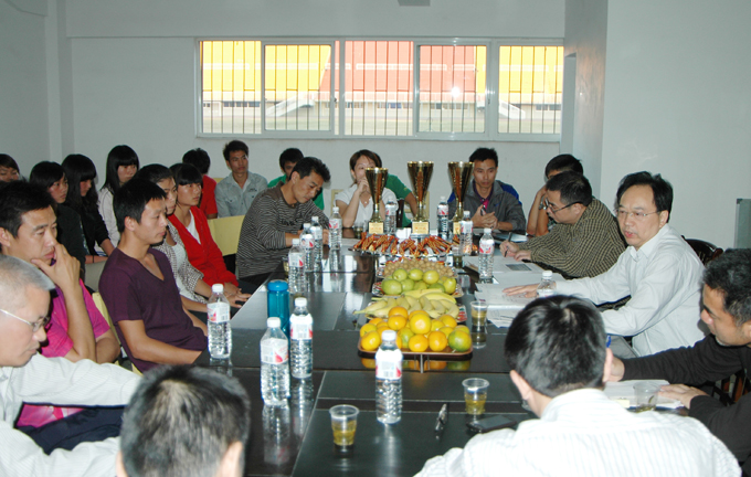 校田径队教练邓晖、黎文普动情地描述了田径队的运动健儿们艰苦训练和顽强拼搏的经历。他们表示:若没有学校领导和相关系部处室的大力支持,田径队不可能取得今天的成绩。