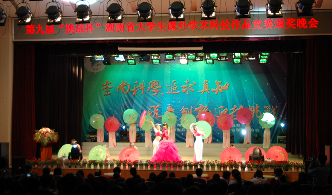 近日,省委教育工委、省教育厅、团省委、省科技厅、省科协、省学联联合下发《关于湖南省第九届"挑战杯"大学生课外学术科技作品竞赛获奖作品、个人和单位的表彰决定》(湘团联〔2011〕24号),我校学子在湖南省第九届"挑战杯"大学生课外学术科技作品竞赛中崭露头角,获得一等奖2项、二等奖3项、三等奖5项的历史最好成绩;我校以团体总分第八的成绩获得"优胜杯"称号,这是我校首次获得"挑战杯"赛事的"优胜杯"奖项,这一历史性的突破标志着我校大学生学术科技创新水平跨上了一个新的台阶。