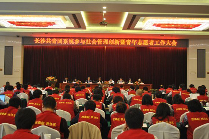4月15日下午,长沙共青团系统参与社会管理创新暨青年志愿者工作大会在枫林宾馆召开。团省委党组成员、纪检组长徐勇,市委常委、政法委书记张湘涛,团市委书记侯文,市文明办副主任胡述斌,团市委副书记叶妙等领导出席会议,全市各单位共青团系统代表,青年志愿者联合会理事会候选人员和各团体会议代表参加会议。