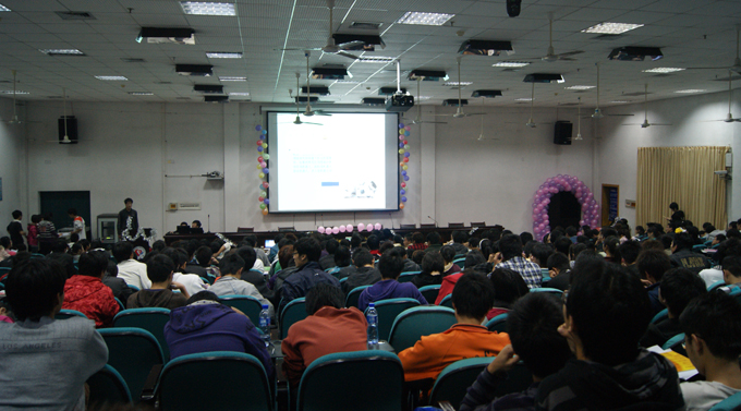 经过初赛的选拔,共13支队伍闯入决赛。彭娜带着她的作品《我与世博有个约会》,用饱含激情的语言为大家展示了世博的精彩瞬间,让同学们感受到日新月异的科学技术所带来的的便捷;袁永的《地铁》以清新脱俗的淡雅奶黄色调瞬间抓住了大家的眼球,他带大家更深入地了解了地铁的原理和作用。优美清丽的PPT,精彩绝伦的解说,使得《地铁》备受评委青睐,一举夺得全场最高分--93.75分。在随后的比赛中,参赛队员一一展示自己的作品,有的以机器人为主题,详细解说了机器人发展的最新动态,有的则展现了嫦娥二号"问天"的艰难历程。评委老师文丹对每个作品作了深刻入理的点评。