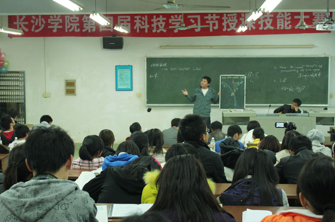 11月30日晚,第四届科技学习节授课技能大赛决赛在明致楼T6教室拉开帷幕。学生工作处处长夏湘远、人事处处长祝磊、公共外语部副主任肖志伟担当本次大赛评委。特邀嘉宾信息与计算科学系党总支书记彭向阳,蓝狐网络市场部经理王西华,副经理冯新观看了比赛。
