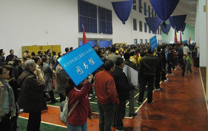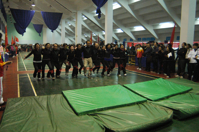 11月28日,天健体育馆羽毛球场内热闹非凡。我校第三届教职工运动会在此隆重举行。开幕式由工会副主席敖洁文主持。体育教学部主任曾一兵宣布了比赛项目。校领导李云龙、钟惠英、屈林岩、宋达、雍正海、王永宏、刘世昌出席了开幕式。