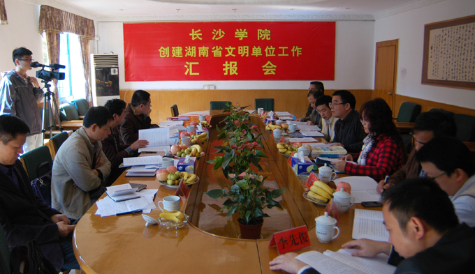 李云龙在介绍了学校概况后,从学校党委高度重视学校文明创建工作、党建和思想政治工作深入扎实、大学生德育工作成效显著、教学科研质量稳步提高、校园文化和环境建设凸现特色及办学实力明显增强等六方面对我校在创建"湖南省文明单位"中所做的工作和取得的成绩作了汇报。