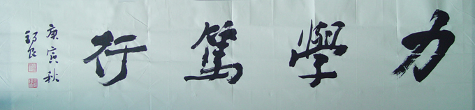 此为张锡良先生赠送给我校的书法精品之作“力学笃行”