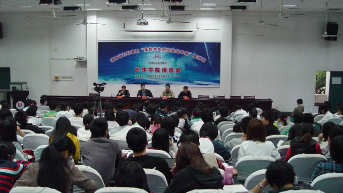 10月20日下午2:30,湖南省社科普及"高校学生创业就业专题"宣讲团长沙学院报告会在致远楼学术报告厅正式开讲。湖南省社科联巡视员、研究员刘晓敏主持报告会,我校副院长郭清泉致欢迎辞。