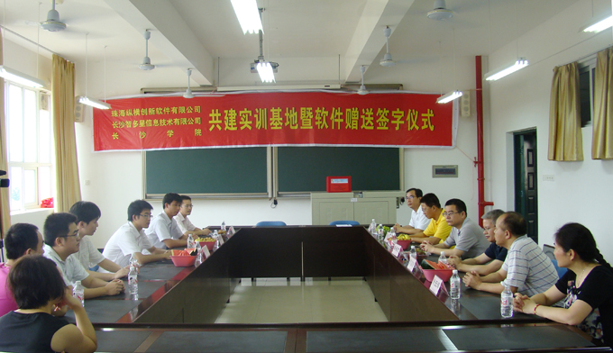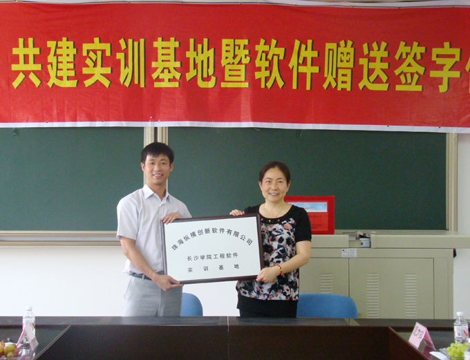 签字仪式上,珠海纵横创新有限软件公司、长沙智多星信息技术有限公司,向我校土木工程系捐赠了价值829400人民币的"纵横公路工程造价管理系统",谢立辉主任和张东晓先生签署了捐赠的合同。然后校企双方一起为共建的实训基地揭牌。据张东晓先生介绍,"纵横公路工程造价管理系统"已通过交通部的测评,成为社会主流软件之一。网络版用户突破万人,遍及全国各省。