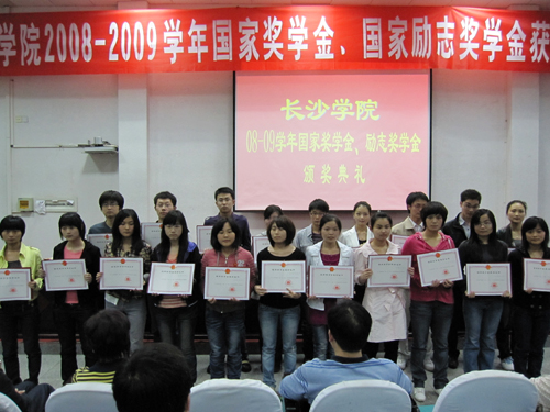 5月13日,我校在学术报告厅隆重举行2008-2009学年国家奖学金、国家励志奖学金颁奖典礼,对25位国家奖学金获得者、301位国家励志奖学金获得者进行表彰,并颁发了荣誉证书。屈林岩副院长,学生工作处夏湘远处长、贺革副处长及各系总支书记和辅导员老师出席了典礼。