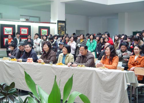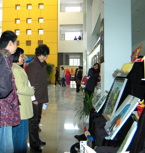 10日下午,在艺术系负责人柳玉、胡嫔、张建龙、吴桢婧的组织策划下,历经半年时间筹备的 "腾飞的中国,崭新的长大"书画作品展在艺术楼一楼展厅展出。党委书记李咏芳,副书记、副院长李云龙,副院长钟惠英、屈林岩出席了开幕式并为展览剪彩;各系部处室、各职能部门的负责人和艺术系的学生一起参观了书画展,钟惠英副院长致词。