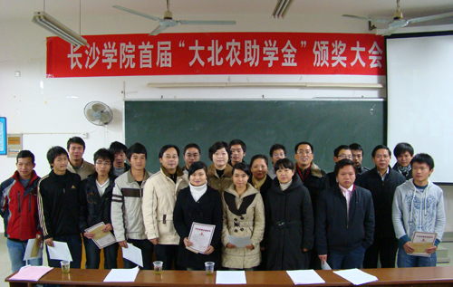 12月8日上午,我校首届"大北农助学金"颁奖大会在生物工程与环境科学系教学楼T8教室举行。我校党委书记李咏芳,大北农集团湖南总经理黎明虎、人力资源部总监唐志敏,我校生物工程与环境科学系主任张建社,党总支书记罗永兰,教务处处长张世英,招生与就业指导处处长李学勇及系部部分老师,07级生物技术、07、08级生物工程专业部分学生及大北农助学金获得者出席了颁奖大会。大会由张建社主持。