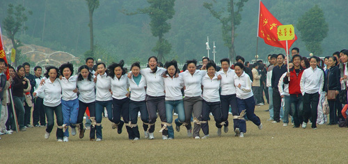 11月16日,初冬时节,我校新体育场内却洋溢着火一般的热情。欢呼声、呐喊声和擂鼓声声声震耳。我校第二届教工运动会在这里紧张激烈地进行着。