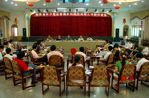 6月24日上午,教师学生活动中心内欢声笑语、喜气洋洋,来自中南大学、湖南师范大学等11所长沙地区普通本科院校从事成人教育工作的领导齐聚这里,共同探讨高等学校成人教育的可持续发展。省教育厅高教处、省教育考试院成招处、省教科院高教所、市教育局高教处、市考试院的相关领导到场对协作会议的召开送上了祝福,并就2008年成教工作的开展作了业务指导。校领导郭清泉到会并致辞。