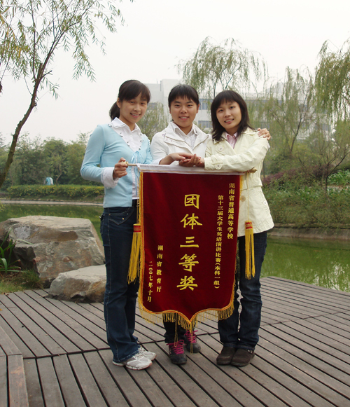 在刚刚落下帷幕的湖南省第十三届普通高校大学生英语演讲比赛暨第六届“CCTV”杯全国大学生英语演讲大赛湖南赛区复赛中,长沙学院代表队奋勇拼搏,再创佳绩,夺得本科一组团体三等奖。我校05级日语1班赵晶同学,05级旅本2班刘进同学分获非英语专业组个人二等奖和三等奖;05级英本1班张倾城同学获得英语专业组个人优胜奖。