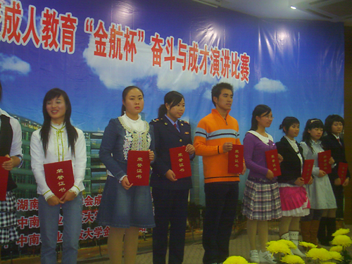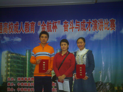 2007年11月3日至4日,湖南省普通高等学校成教大学生演讲比赛中,我院选派的向杰、马婧2位同学以出色的演讲双双荣获二等奖,再为我院争得荣誉。