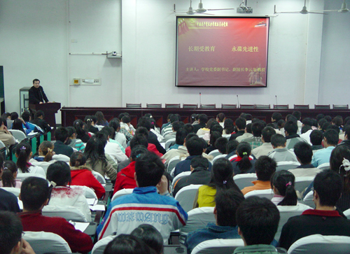 11月24日下午,在雄壮的《国际歌》声中,我校480名预备党员在科技楼学术报告厅参加了第一期预备党员培训班开学典礼。党委副书记、副院长、党校校长李云龙以《长期受教育 永葆先进性》为题给学员们上了第一课。他以互动和举例说明等方式为学员具体阐述了十七大报告的主题,解读了《长沙学院学生党员先进性标准》,并与学员们一起重温了入党誓词。通过播放视频、图片等形式,李云龙深刻形象地介绍了预备党员应该具备的精神内涵与思想素质。他结合我校实际,详细阐述了我校学生党员先进性的要求:胸怀理想,心忧天下;志存高远,身心健康;遵纪守法,诚信为人;发奋学习,勇于创新;关心集体,乐于助人;全面发展,争当楷模等,并强调了学习方法的重要性。