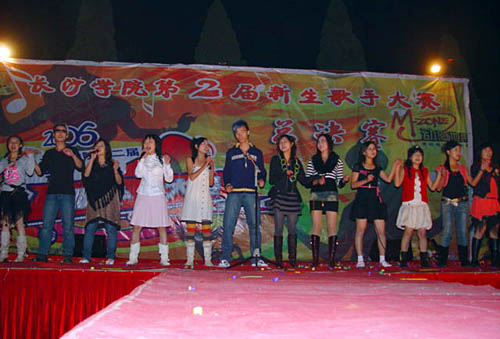 特邀嘉宾“人参米” 街舞团动感时尚的街舞表演拉开了大赛的序幕。从海选、复选到半决选,历时近一个月的激烈角逐,最终脱颖而出的十四名选手以饱满的热情投入到比赛中,他们声情并茂的演唱与亲友团极具特色的助阵方式完美融合,使整场比赛高潮迭起。其中,胡坤用沉静的声线和优美的旋律演绎了唯美的《红颜》;柔美女生温柔同学则自填歌词,尽显才华;实力唱将张维楚一曲激昂的《离歌》配以柔美的舞蹈,惊爆全场,成为大赛的亮点。