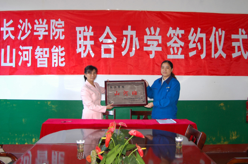 校领导李云龙代表学院与山河智能机械股份有限公司签订了合作办学协议书,机电工程系主任从山河智能人力资源部主任手中接过了“山河班”的牌匾,招生就业处、机电工程系和山河智能人力资源部的相关负责人出席了签约仪式。这是继我院与中联重科合作之后的又一次校企联合。