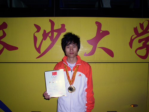 黄小龙同学在湖南省第八届大学生运动会上为我校摘得首枚金牌