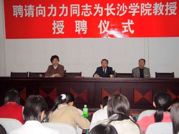 4月12日上午,我校科技楼学术报告厅内春意盎然,聘请向力力副市长为我校特聘教授的授聘仪式正在举行。院长刘耘向大家介绍了向市长学术研究、经济和金融管理方面的成就,并为他颁发了聘书,正式聘请他为长沙学院的特聘教授。