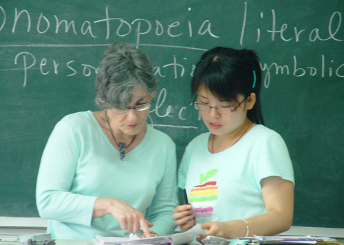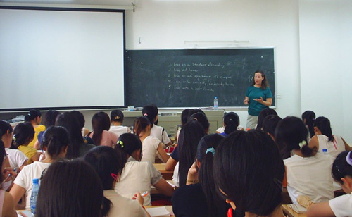 应我校邀请,来自美国劳伦社区学院的两位教授Marilyn Valentino 和Sharon Van Houte于5月26日抵达我校开展为期四个星期的讲学活动(5月28日-6月22日),主讲课程分别为《美国现代文学》和《美国文化》。此次讲学主要面向我校英语专业的学生,外语系共选拔了80名成绩较为优异的同学参加了这两门课程的学习。