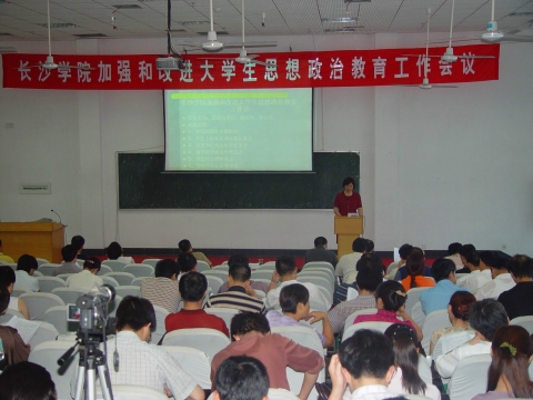为贯彻落实中共中央、国务院和省委、省政府关于进一步加强和改进大学思想政治教育工作会议精神,深入探讨和研究新形势下大学生思想政治教育的新思路、新办法,我校于7月14日下午在科技楼学术报告厅召开了加强和改进大学生思想政治教育工作会议。参加会议的有全体校领导、全体中层干部、民主党派负责人、无党派人士代表、学生辅导员、团、学组织负责人、教师代表、学生代表。会议由学校党委副书记、副院长李云龙主持。会上,主管学生工作的宋达副校长传达了中共中央发[2004]16号文件和中共湖南省委湘发[2005]8号文件精神;党委书记李咏芳就如何加强和改进大学生思想政治教育工作作了重要讲话;学生工作处处长夏湘远、总支书记代表朱若松、辅导员代表余中华、学生代表谭婷分别就如何学习贯彻文件精神作了表态性发言;会议最后,李咏芳书记强调,加强和改进大学生思想政治教育工作,培养一批又一批中国特色社会主义事业的合格建设者和可靠接班人,事关全局,事关长远,是时代的要求、历史的重托、人民的期望。她要求各系部、处室要认真学习、“以学生为本”、深入贯彻落实中央16号文件精神,激扬豪情,凝聚合力,狠抓落实,乘势而为,努力开创我校大学生思想政治教育工作新局面。