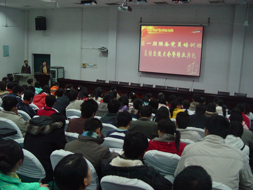 12月23日下午,长沙学院党校第一期预备党员培训班学习交流大会暨结业典礼在科技楼学术报告厅举行。出席本次大会的领导有党委副书记、副院长、党校校长李云龙,各系部党总支书记和部分系部的学生党支部书记,大会由党委组织部长、党校副校长甄洁洪主持。