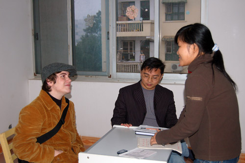 当记者问到Harrison为什么选择学习中文时,他说:“我喜欢中国,我也在美国了解了老子的一些观点,学习中文是一件十分有趣的事情,在这里我能更好地理解中国的历史和文化。”他还告诉记者他来长沙学院留学不仅仅是因为我校2004年6月与美国俄亥俄州爱尼利亚劳伦社区学院签订的交流协议,更多的是被这里优秀的人文环境和校园环境所吸引。Harrison曾经游历过中国的许多地方:北京、上海以及伟人故乡韶山等,他说,“湖南是毛泽东、刘少奇等许多伟人的故乡,让我十分向往,绿树成荫、山清水秀又颇具规模的长大校园也非常漂亮!”另外,他还表示学校的管理很不错,领导让他觉得十分亲切、随和,他很喜欢这里。