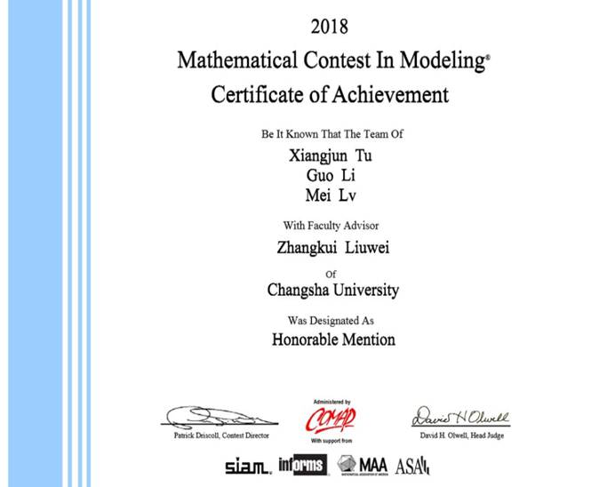 4月20日,2018年美国大学生数学建模竞赛的成绩正式揭晓,我校荣获二等奖2项。