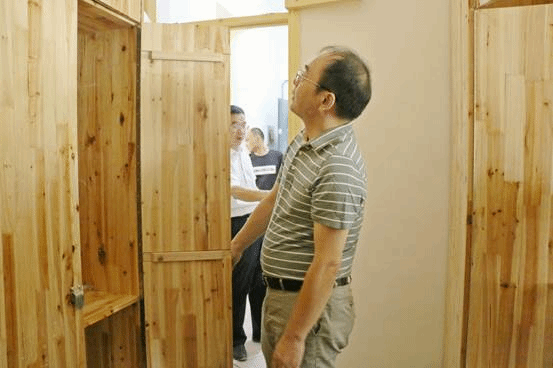 杨小云校长仔细查看改造后的宿舍衣柜等设施