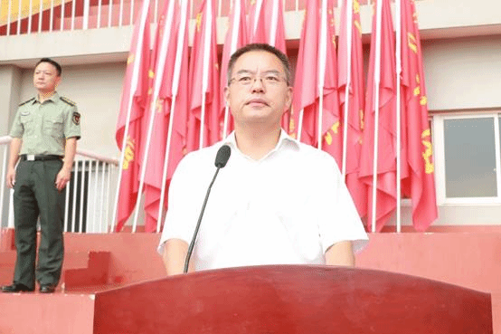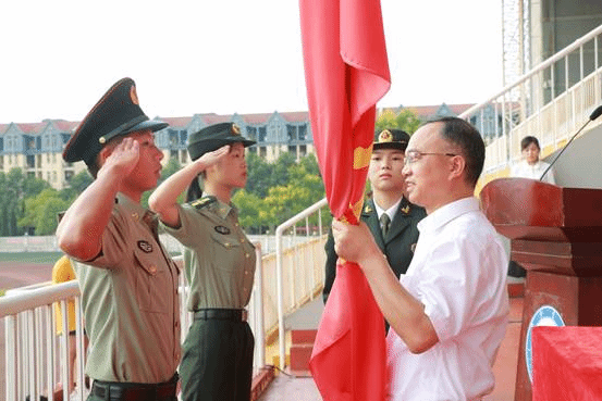 动员大会在嘹亮的国歌声中拉开帷幕。武装部部长戴伟丁宣读了《长沙学院关于对2018级新生开展军训的通知》。伴随着雄壮的音乐声,屈林岩副书记为各军训团、营授旗。
