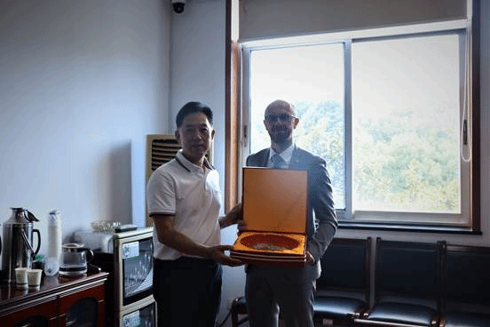 教育专员Sébastien Bédé先生和刘世昌副校长互赠礼物