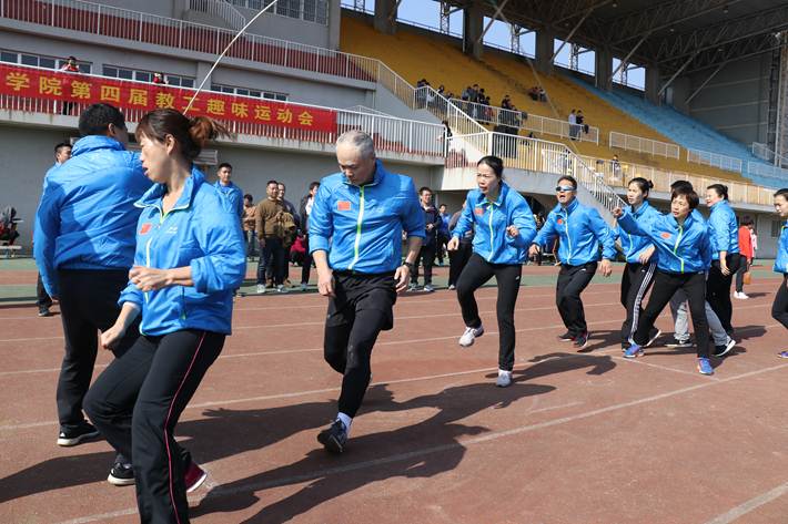 为提高全体教职工身体素质,增进友谊,11月24日,我校第四届教职工趣味运动会在天健体育场顺利举行。党委副书记、校长杨小云,党委副书记屈林岩,纪委书记杨兴龙,党委委员甄洁洪出席开幕式。校工会常务副主席刘昊致开幕词。校长杨小云宣布本次运动会正式开始。