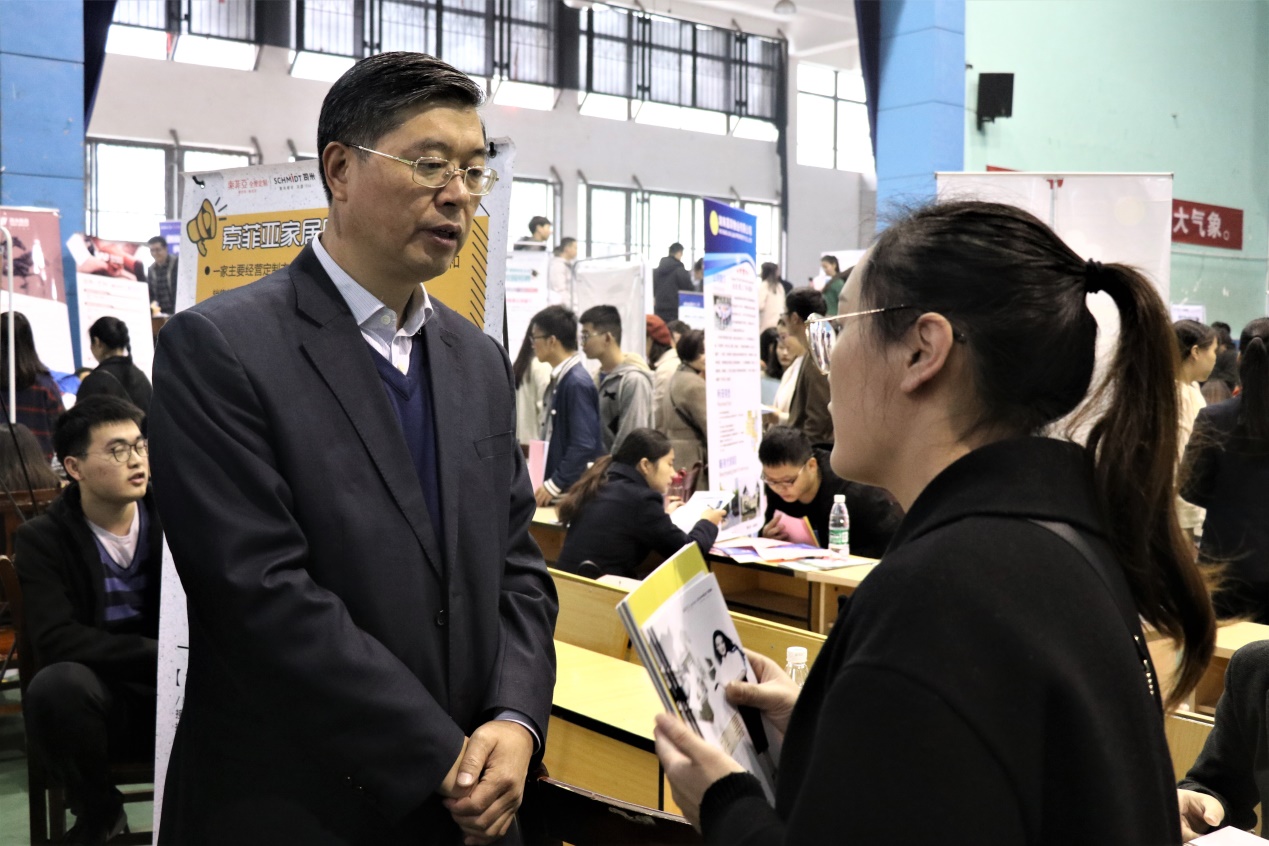 韦成龙详细了解了来校招聘企业的具体情况和各专业的就业优势。他表示:“为保证我校毕业生高质量就业,学校做了很多努力,校友专场招聘会是我们学校的一大特色,能够有效提升我校毕业生就业针对性,帮助他们尽早融入社会。”