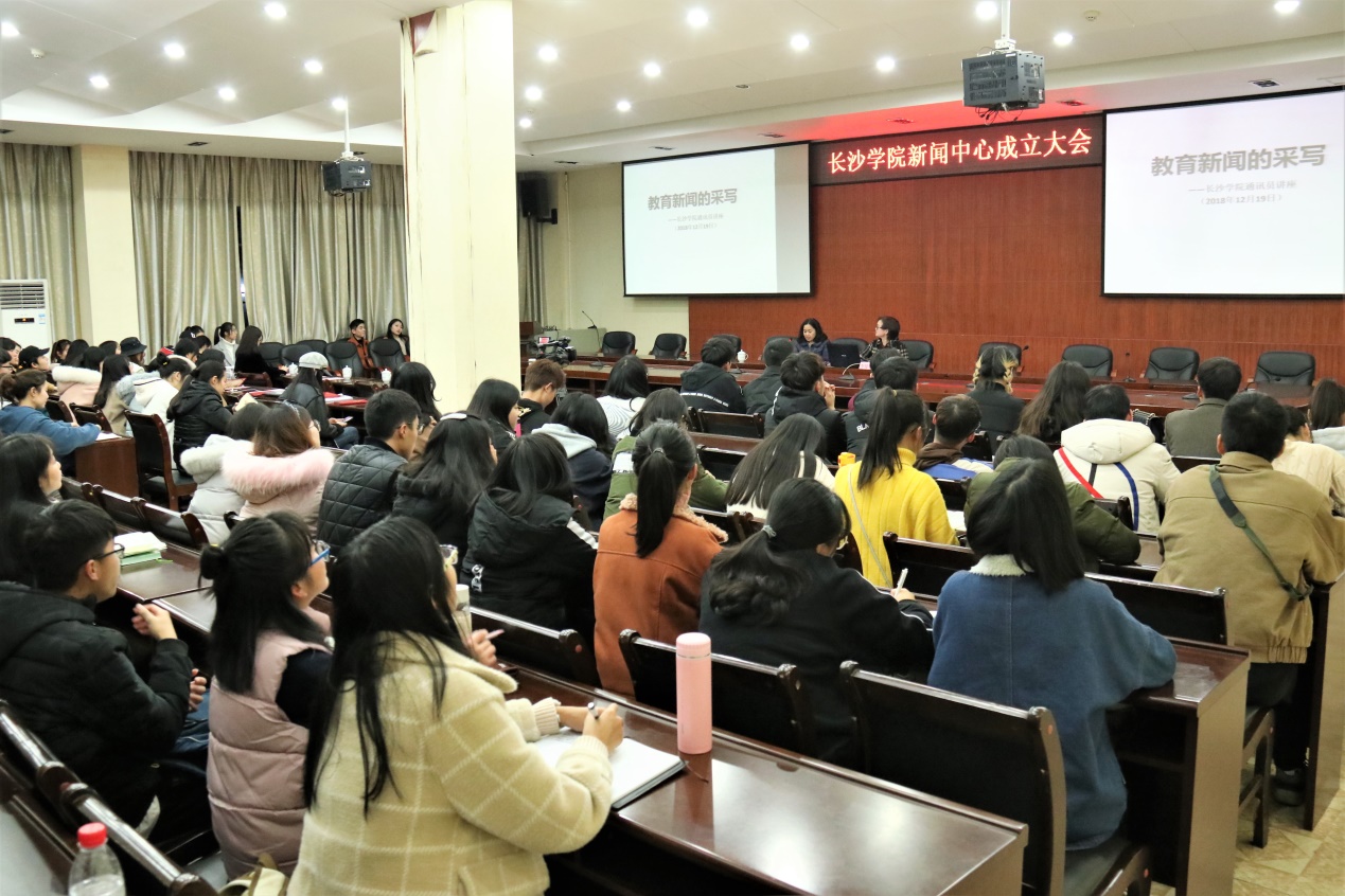 12月19日晚,我校在图书馆一楼会议室举办新闻中心成立大会暨新闻采写专题讲座。《中国教育报》湖南记者站副站长、高级记者李伦娥受邀出席大会并作专题讲座,我校党委宣传部全体工作人员、长沙学院新闻中心首届学生记者、各二级单位通讯员代表等参加大会。