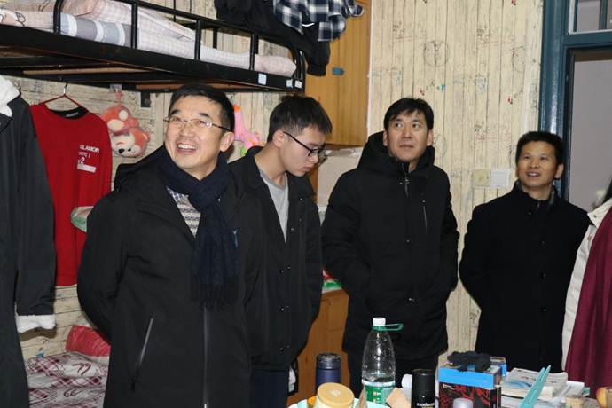 周明侠一行深入教学楼栋、学生宿舍、食堂等场所进行安全隐患排查,重点布置了防寒、扫雪、除冰和保水保电工作。在汇泽宿舍,周明侠一行详细询问了学生的学习生活及空调使用情况,叮嘱学生注意用电安全和出行安全。