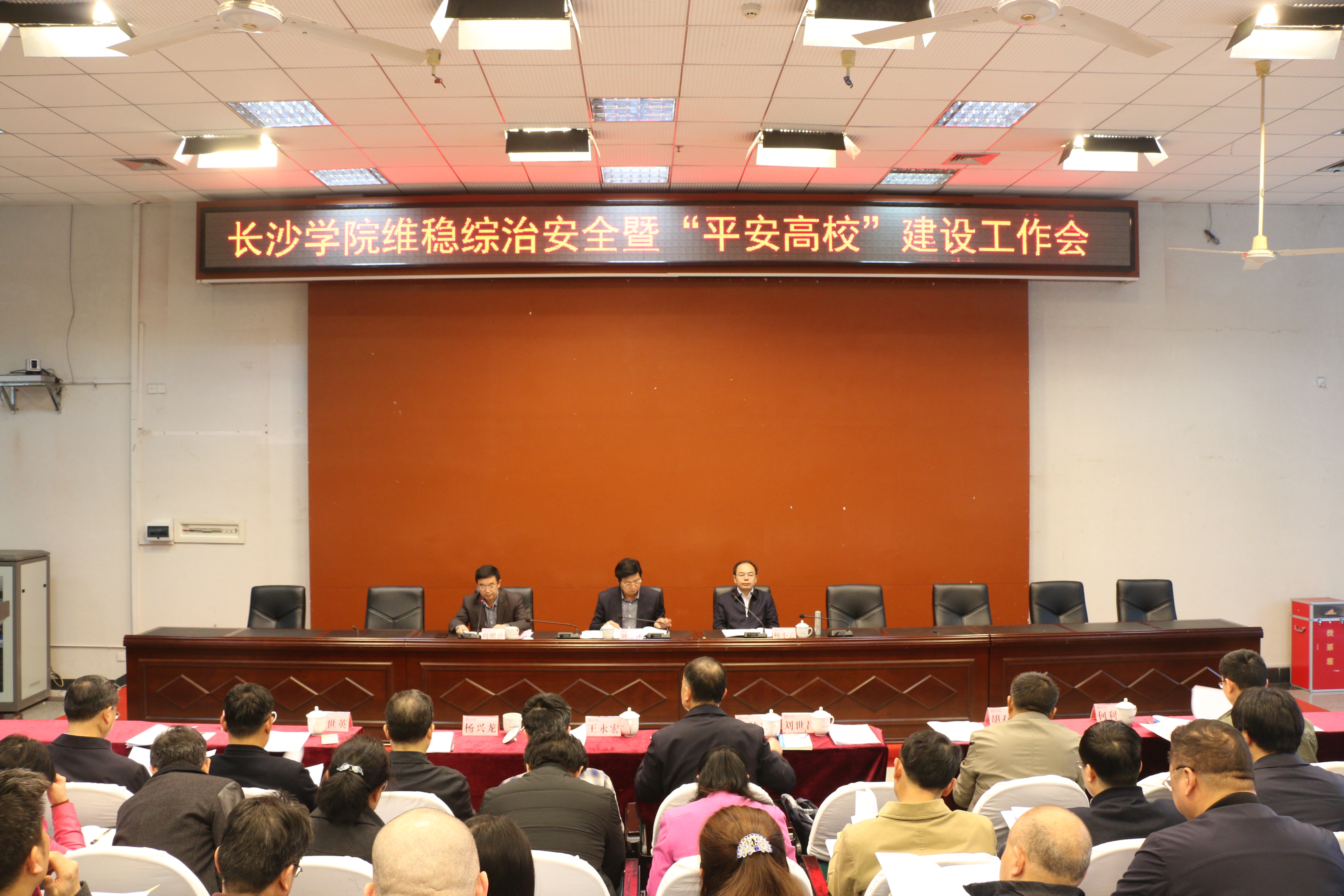 4月16日下午,我校在致远楼学术报告厅召开长沙学院2019年度维稳综治安全暨“平安高校”建设工作会。参加本次会议的有全体在校校领导、学校全体中层干部、全体教研室实验室主任、学生辅导员、物业公司、保安公司、食堂等校级服务机构的同志。会议由党委副书记、校长杨小云主持。