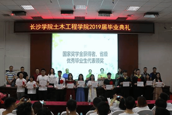 最后,土木工程学院党总支书记张跃佳宣读了土木工程学院2019届国家奖学金、省级优秀毕业生获得者名单,与会嘉宾为他们颁奖。