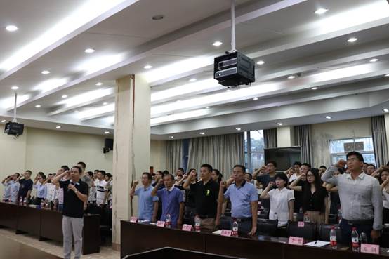 随后进行了庄严的入职宣誓仪式,由苏钢教授领誓,全体新进教职工面向国旗郑重宣誓,声声誓言慷慨有力,强化了全体新进教职工践行师德承诺的信念,进一步激发了立德树人、干事创业、奉献教育的热情。