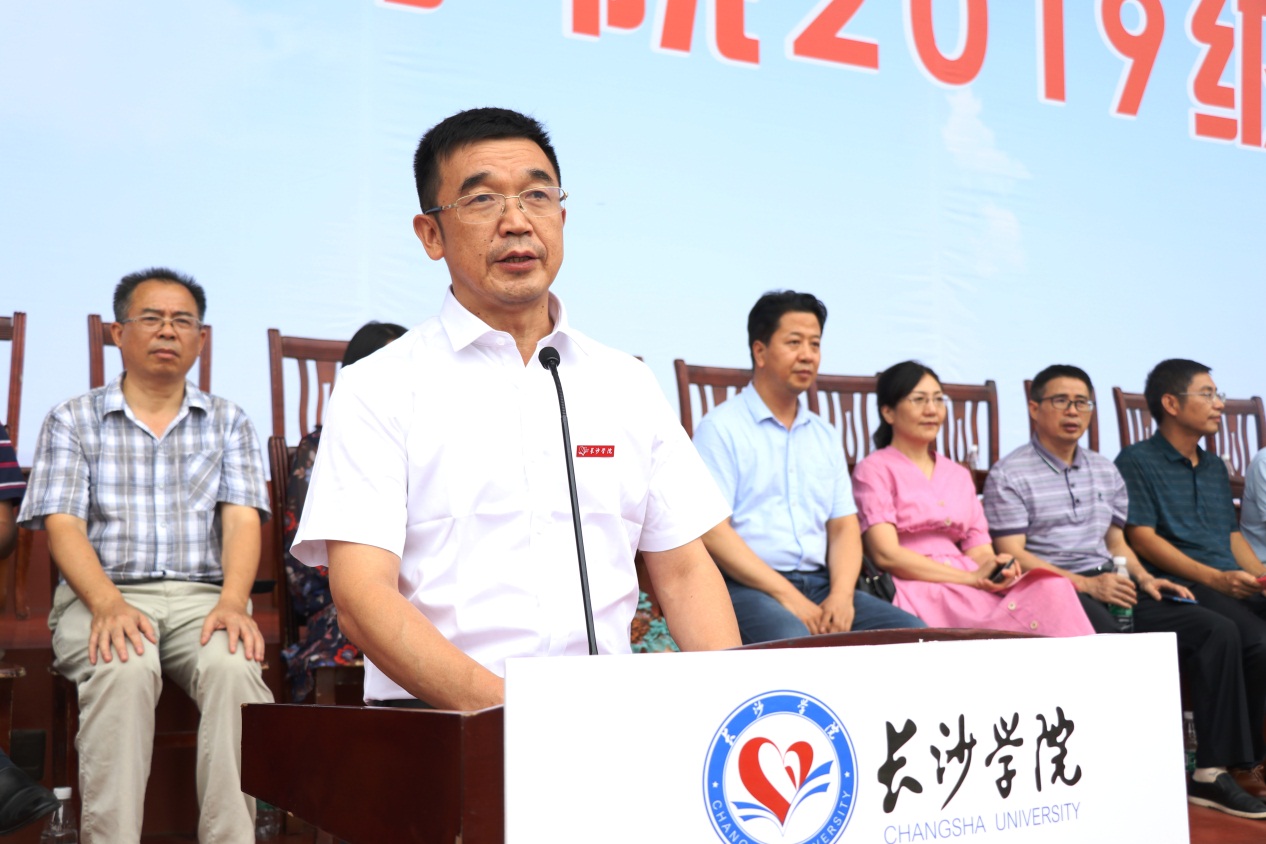 同学们,浏阳河畔闻征鼓,只争朝夕启新程。让我们接过青春奋斗的接力棒,弘扬爱国主义精神,勇担时代责任,加快青春步伐,在长沙学院书写你们最亮丽的青春诗篇。