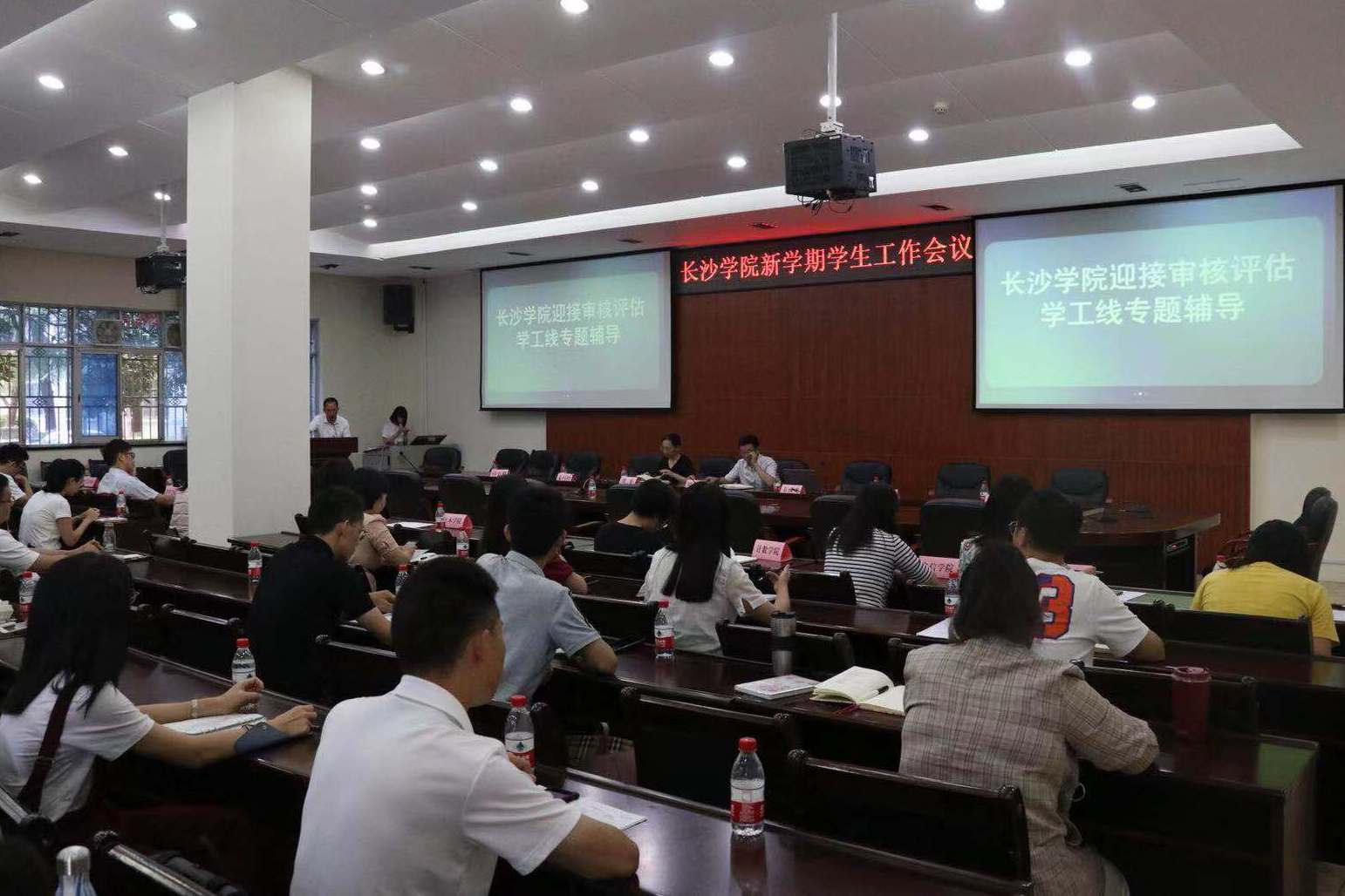 9月16日,学工部在图书馆一楼会议室组织召开新学期学生工作会议。副校长周明侠出席会议,校内评建专家组组长韦成龙教授为学工线教师做本科教学审核评估专题辅导。质评办、团委负责人,全体二级学院党总支副书记、辅导员参加会议。